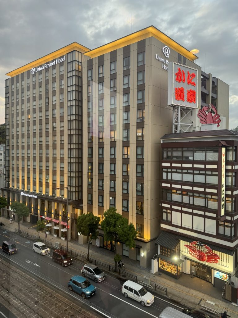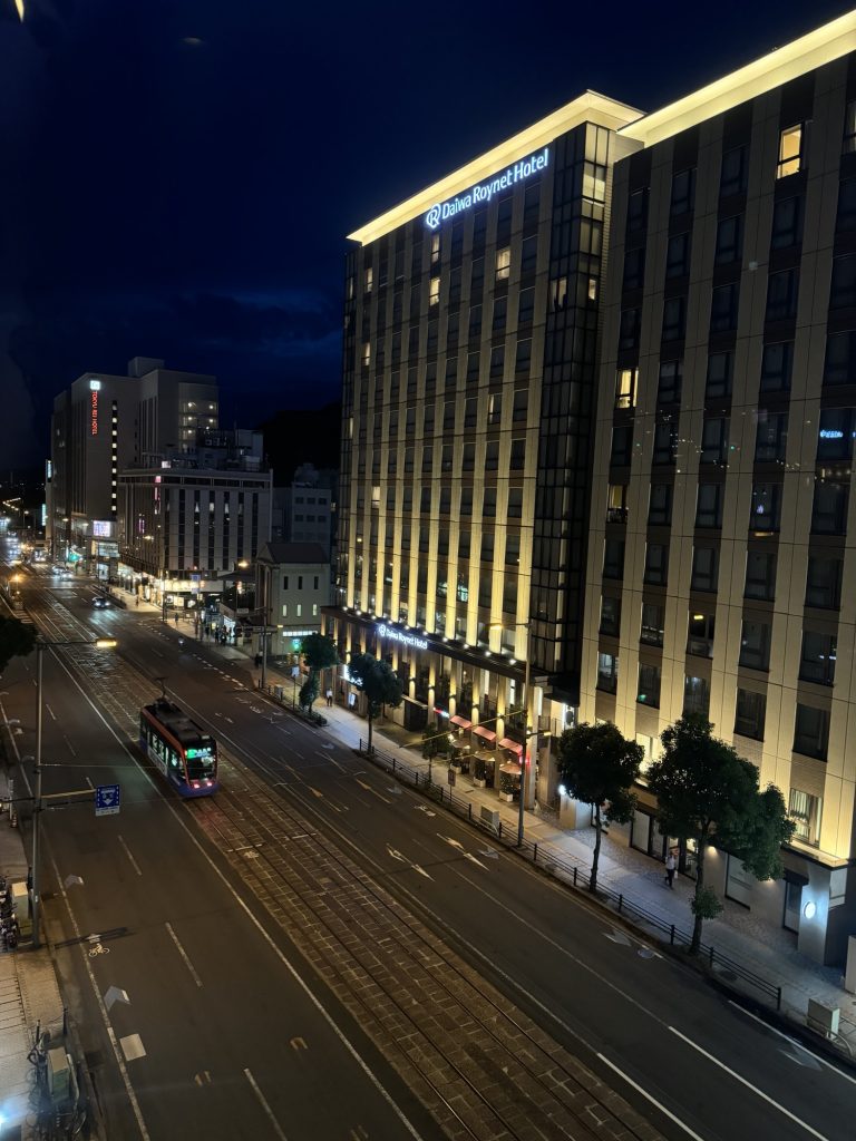 一番町の電車通り沿いにある9階建ての黒い建物です